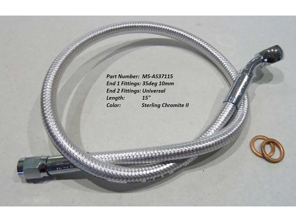 15″ Upper Front Brake Line with 10mm x 35 Degree Banjo & Sterling Chromite Finish.