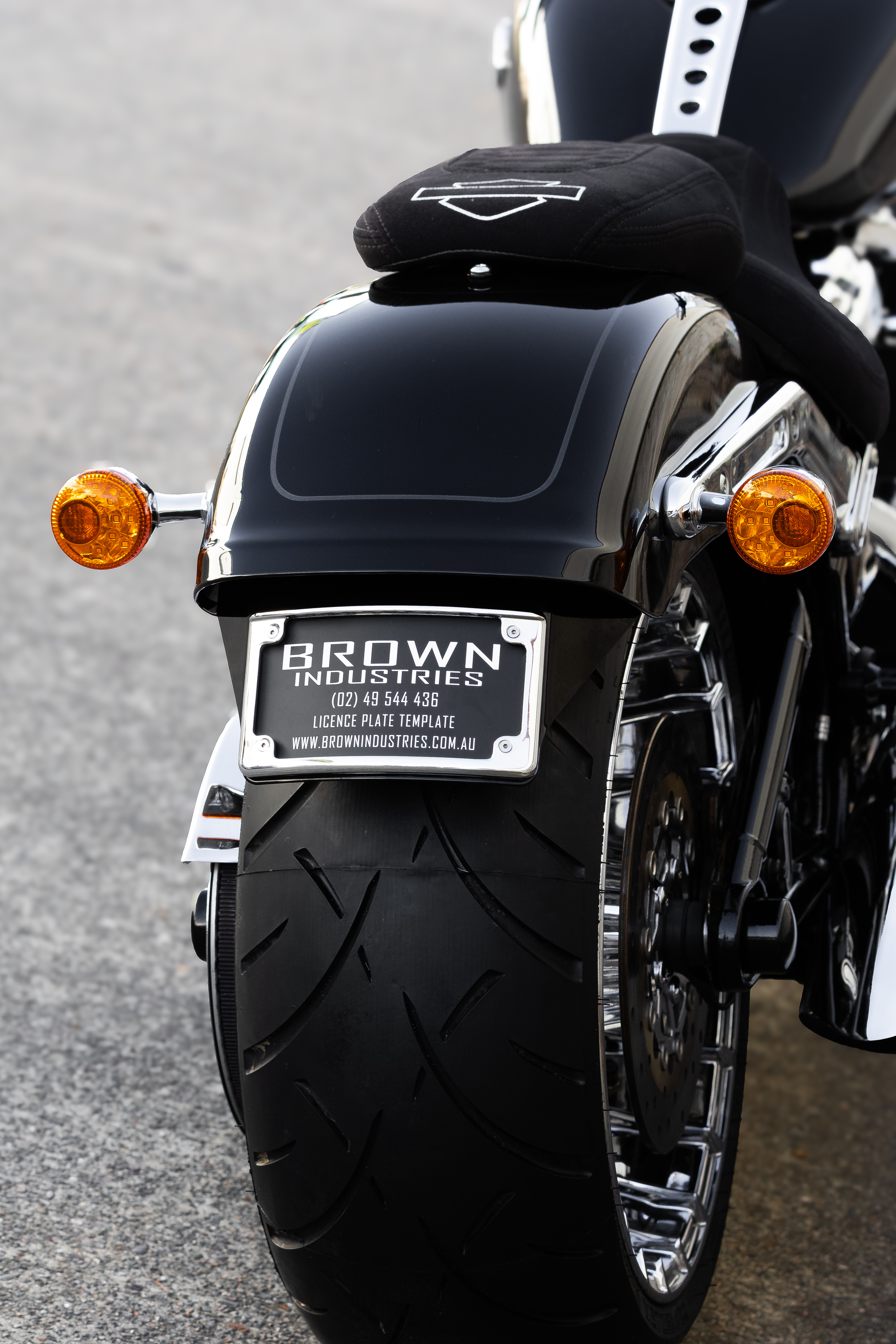 Brown Industries is proud to offer our very own Tail Tidy range. Our Version 1 Fat Boy 2018-2024 & 2025-UP Tail Tidy offers a neat finish that keeps your original indicators and has a built-in number plate light.